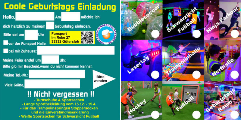 Coole Einladungskarte zum Download, Ausdrucken, Ausschneiden und Falten. Jetzt NEU auch mit Vereinsfarben.