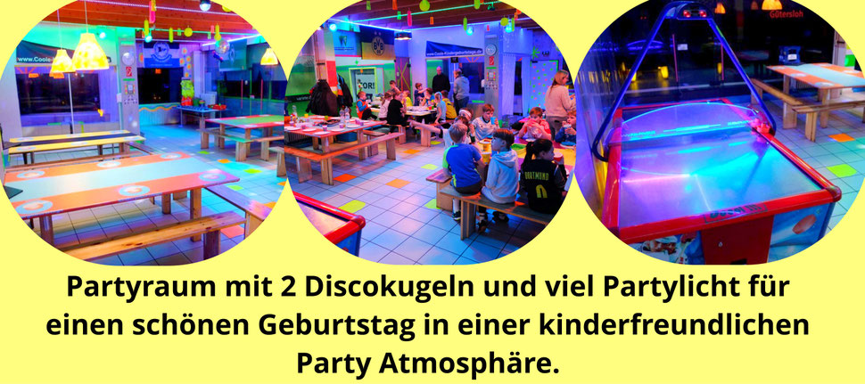 Der Partyraum befindet sich in der Mitte und alle Sporthallen sind nur eine Tür entfernt. Die Kinder können jederzeit den Geburtstagstisch erreichen um sich zu stärken.